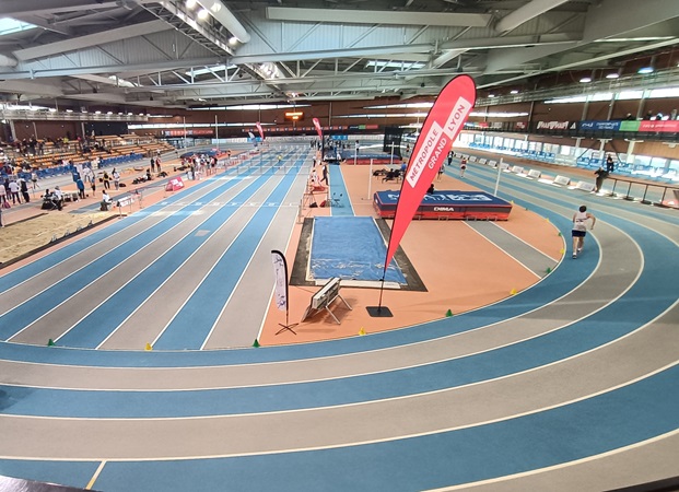 La salle Stéphane Diagana à Lyon pour les championnats de France Masters Indoor 2024.