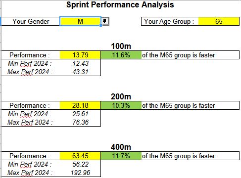Les différents tableaux pour les 100m, 200m et 400m sont ci-dessous pour les femmes et les hommes.