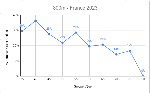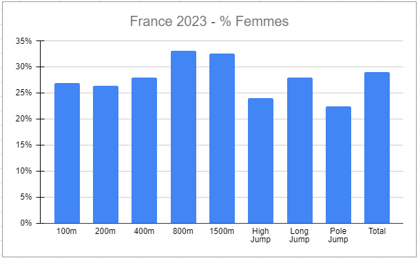 | 800m | Femmes | Hommes | % Femmes / Total |